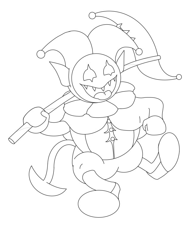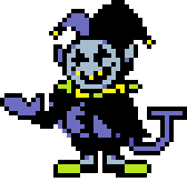 Description: My interpretation of how Deltarune’s Jevil would appear based on his pixelated sprite.